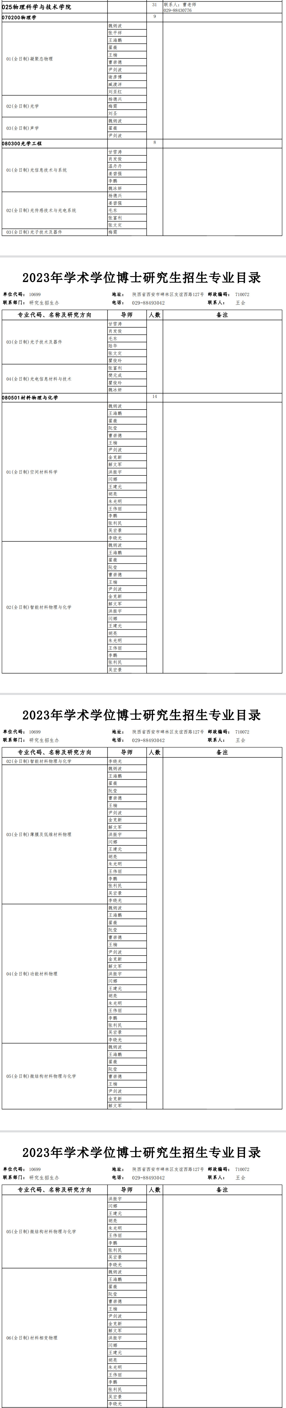 西北工业大学考研辅导班:2023物理科学与技术学院学术型博士研究生招生专业目录