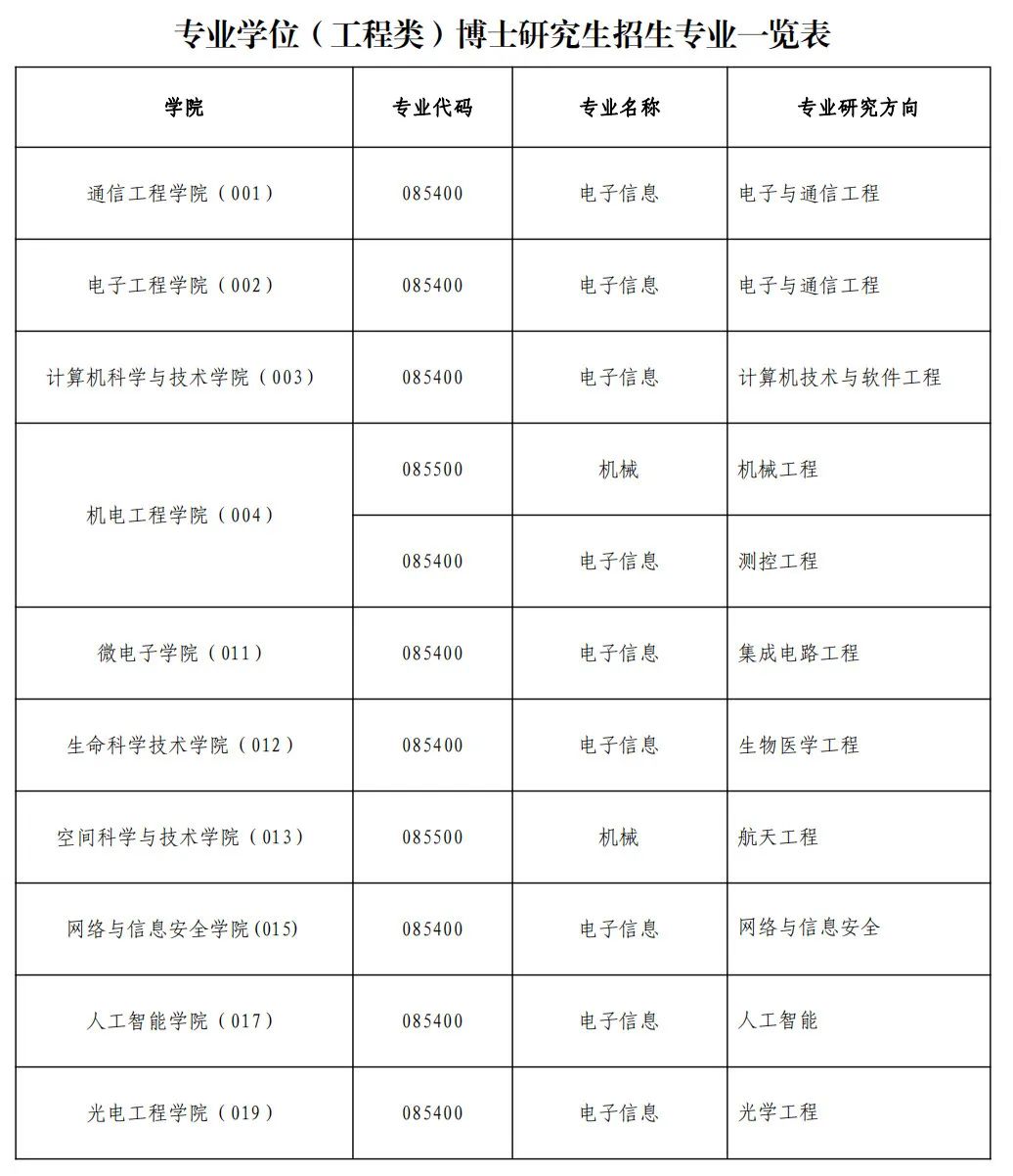 2023年西安电子科技大学专业学位(工程类)博士研究生招生专业一览表