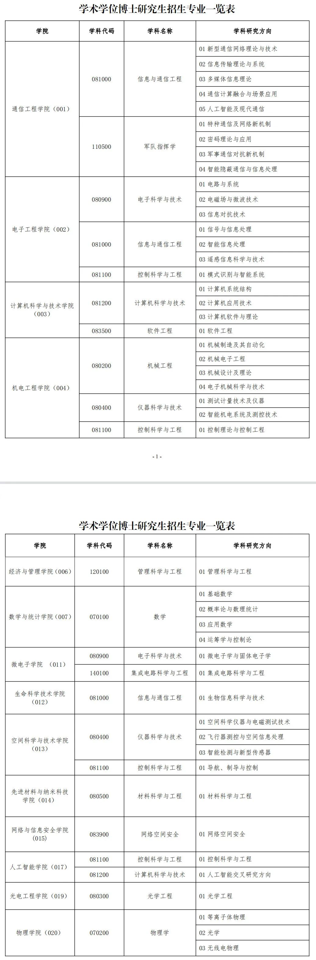 西安电子科技大学考研辅导班:2023年学术学位博士研究生招生专业一览表