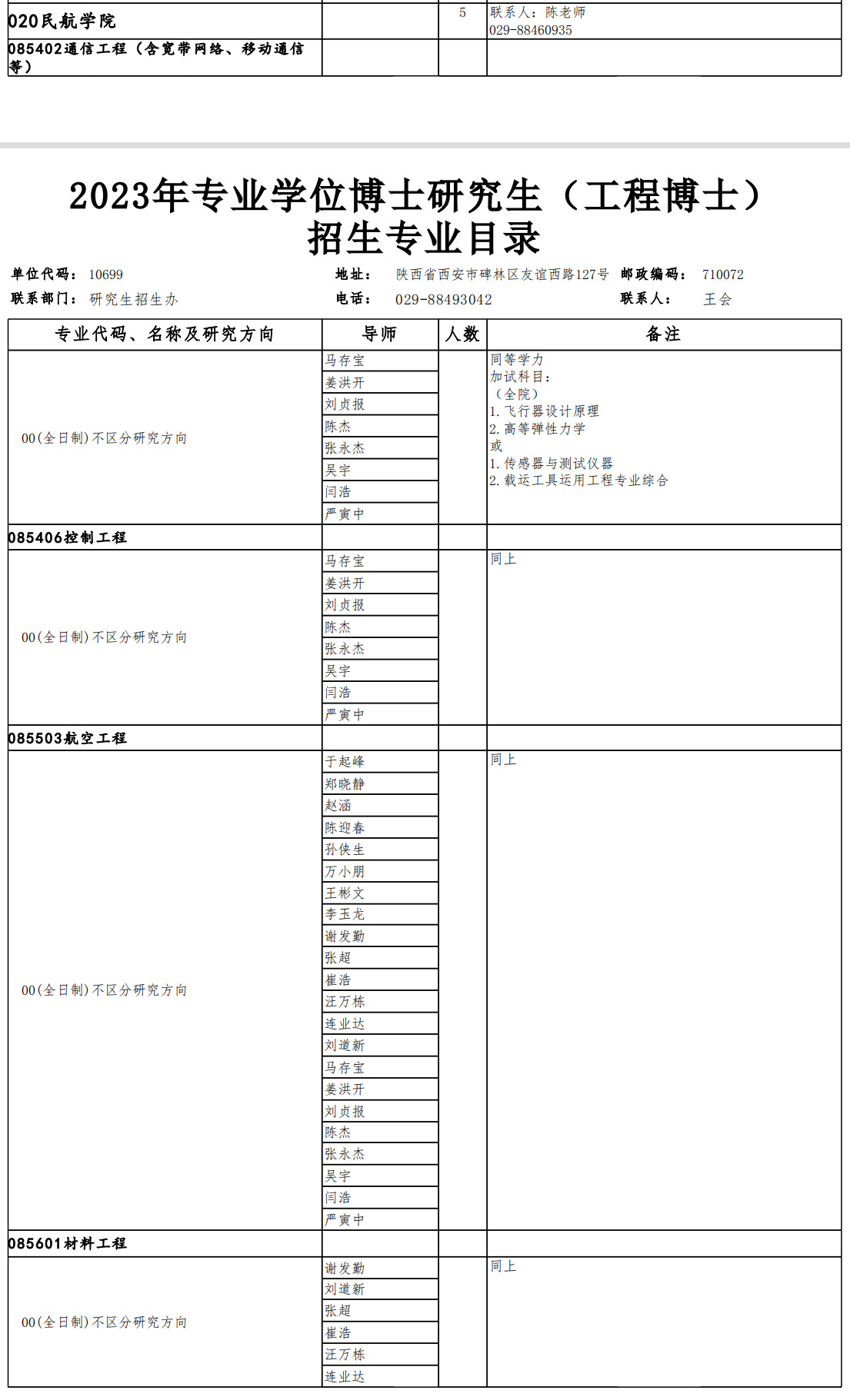 西北工业大学考研辅导班:2023年民航学院专业学位博士研究生招生专业目录