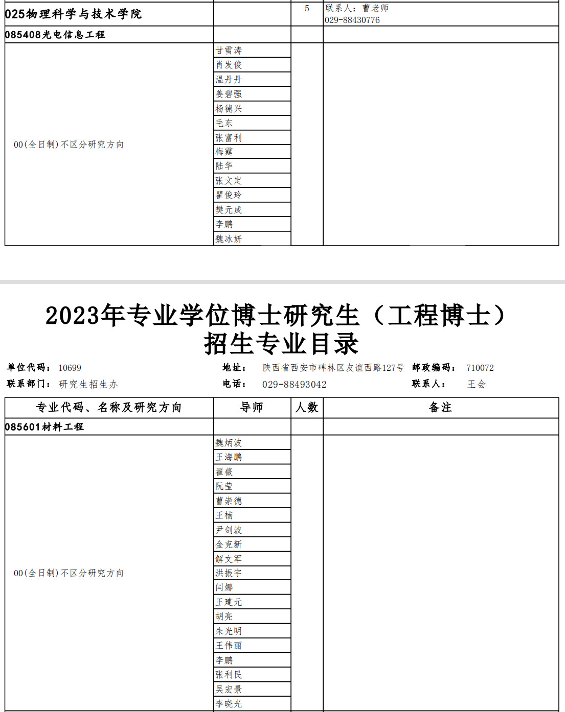西北工业大学考研辅导班:2023年物理科学与技术学院专业学位博士研究生招生专业目录