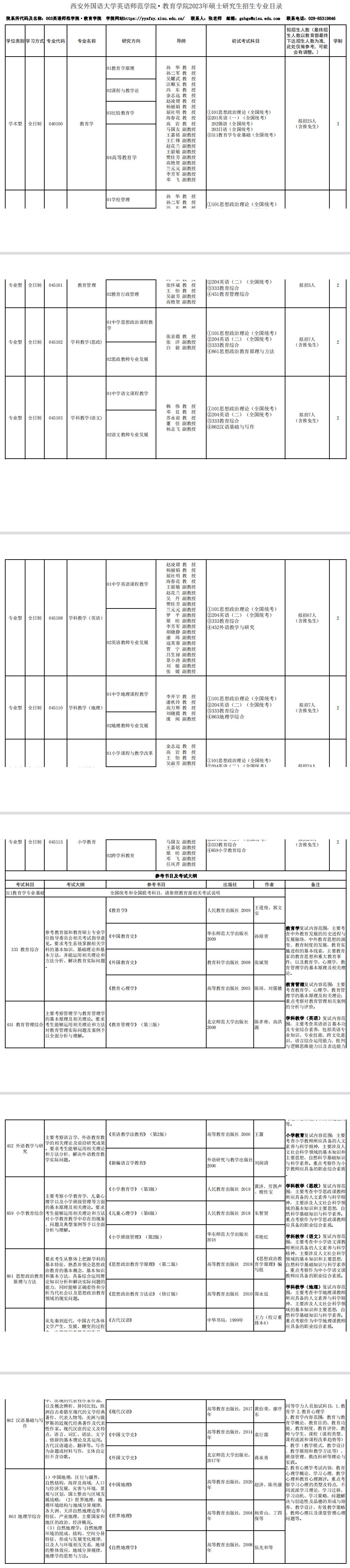 2023年西安外国语大学英语师范学院·教育学院硕士研究生招生目录及参考书目