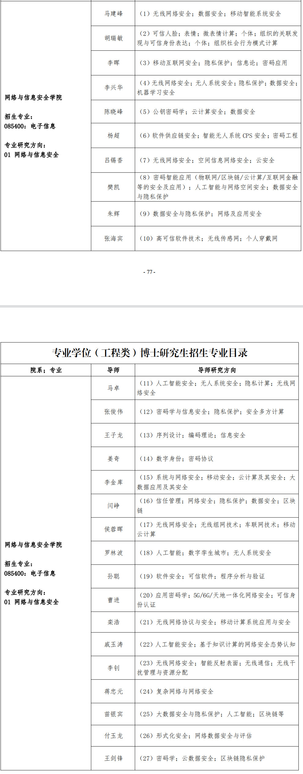西安电子科技大学考博辅导班:2023年网络与信息安全学院专业学位博士研究生招生专业目录