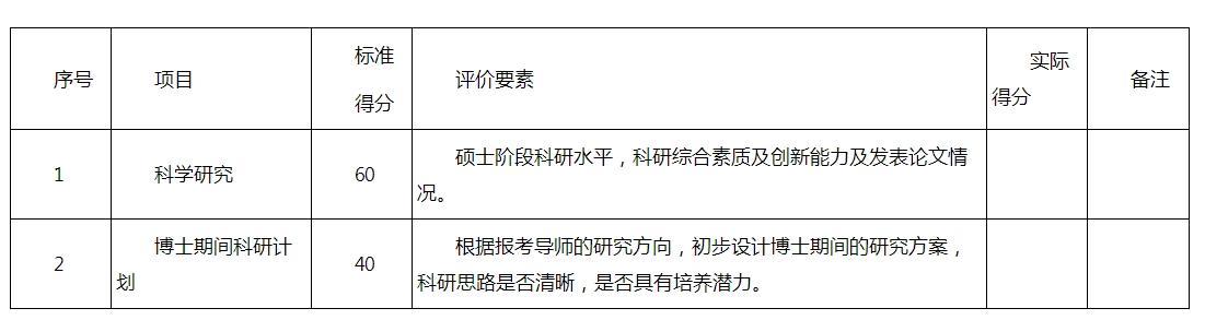 总分:100分。科研潜质初选审查成绩低于70分或外语成绩、业务科目成绩、总分低于60分及心理测试不合格者,不予录取。