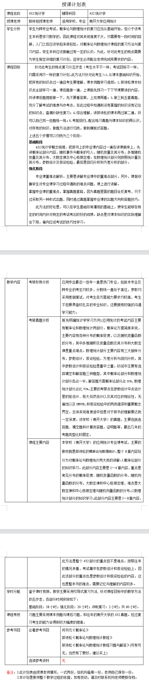 南开大学考研辅导班:2024年南开大学应用统计专业考研一对一辅导授课计划