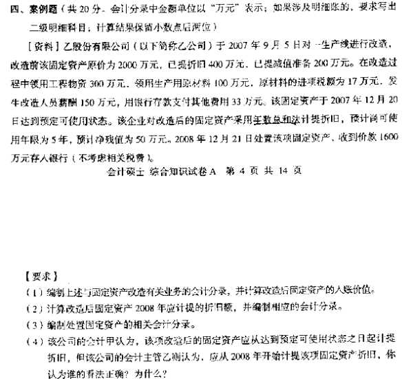 考研真题:会计硕士联考2008年综合知识试卷(A)会计部分试题
