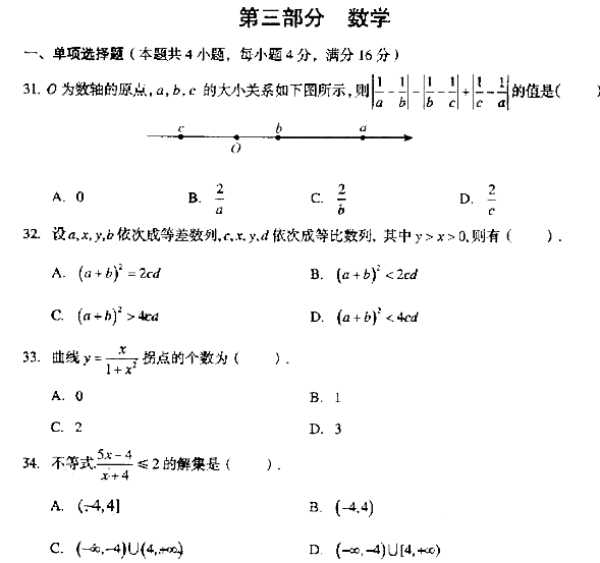 会计硕士联考2008年综合知识试卷(A)数学部分试题