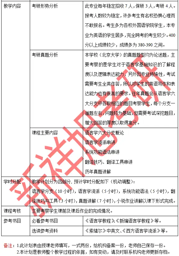 2024年新祥旭北京大学外国语言学及应用语言学考研参考书及授课计划