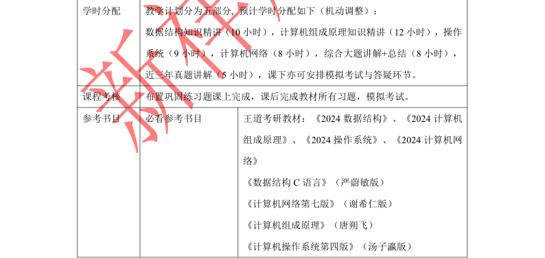 北京大学考研辅导班:2024年计算机学科专业基础考研参考书目、复习规划、授课计划等汇总