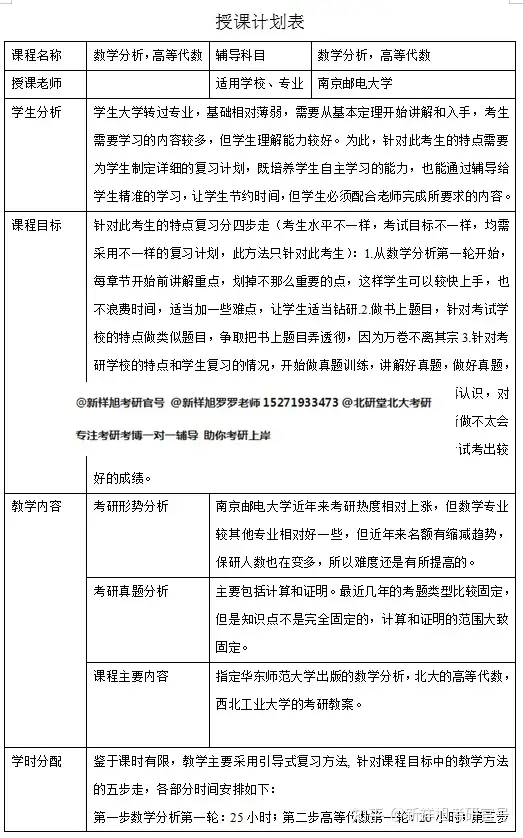 新祥旭考研: 南京邮电大学数分高代授课计划参考