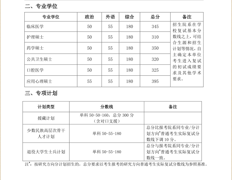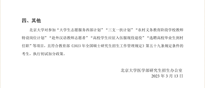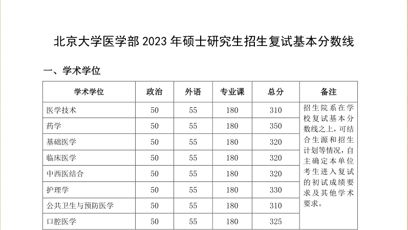 北京大学医学部2023年硕士研究生招生复试基本分数线