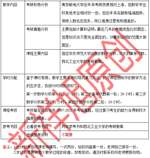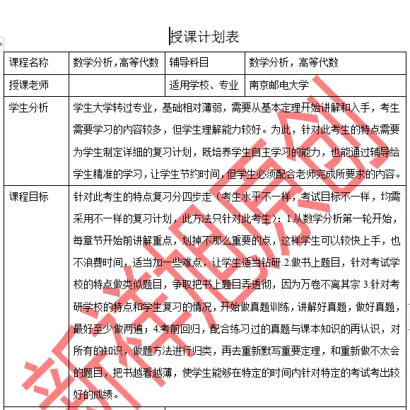 南京邮电大学数学分析+高等代数考研参考书及授课计划