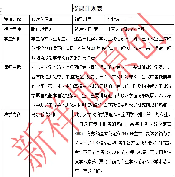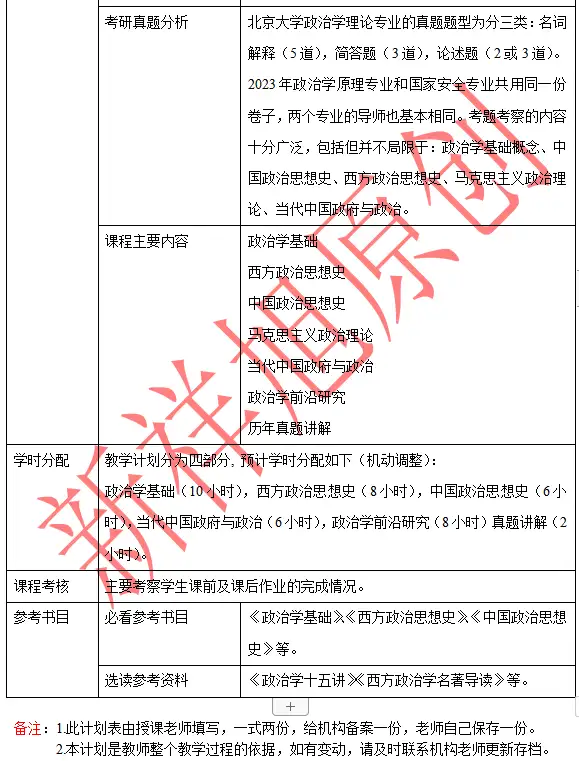 新祥旭2024年北京大学政治学原理考研参考书及授课计划