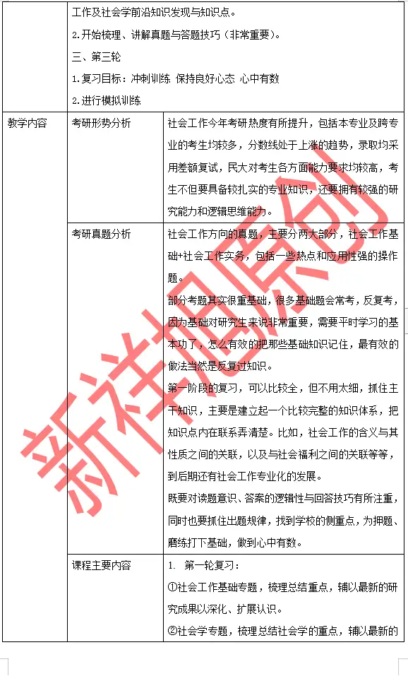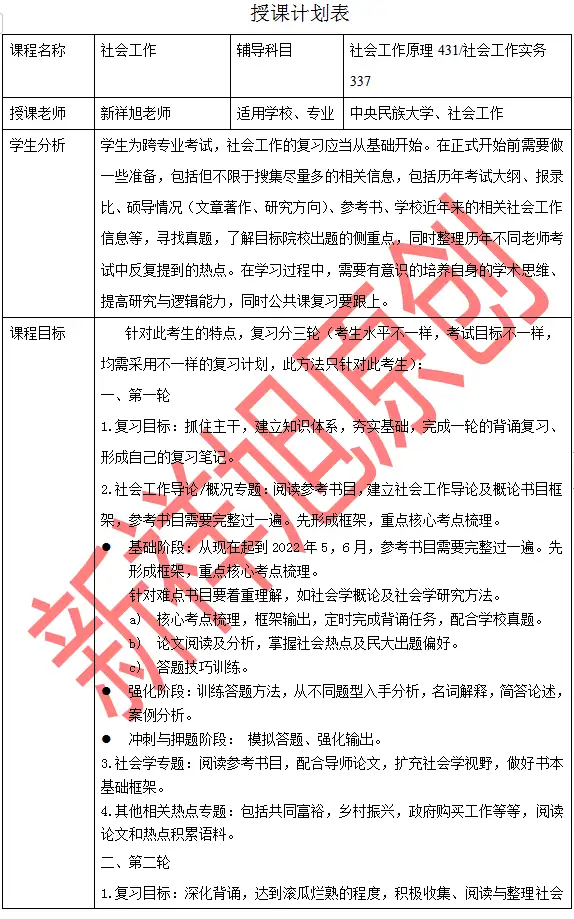 新祥旭2024年中央民族大学社会工作考研参考书及授课计划