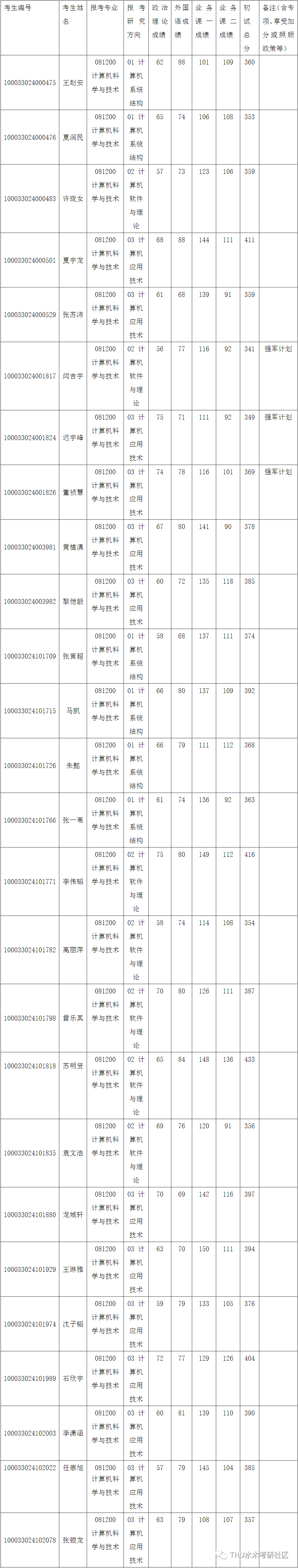 清华大学2023年计算机科学与技术系全国硕士研究生招生考试计算机科学与技术专业入围复试名单公示