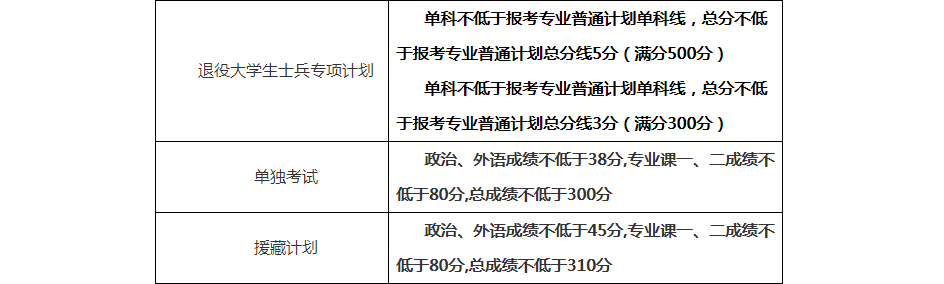 (1)参加“大学生志愿服务西部计划”“三支一扶计划”“农村义务教育阶段学校教师特设岗位计划”“赴外汉语教师志愿者”等项目服务期满、考核合格的考生,3年内参加全国硕士研究生招生考试的,初试总分加10分,同等条件下优先录取。
