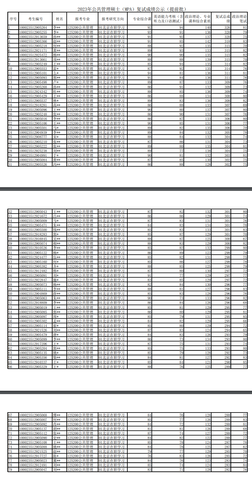 新祥旭考研:中国人民大学2023年公共管理硕士(MPA)复试成绩公示(提前批)