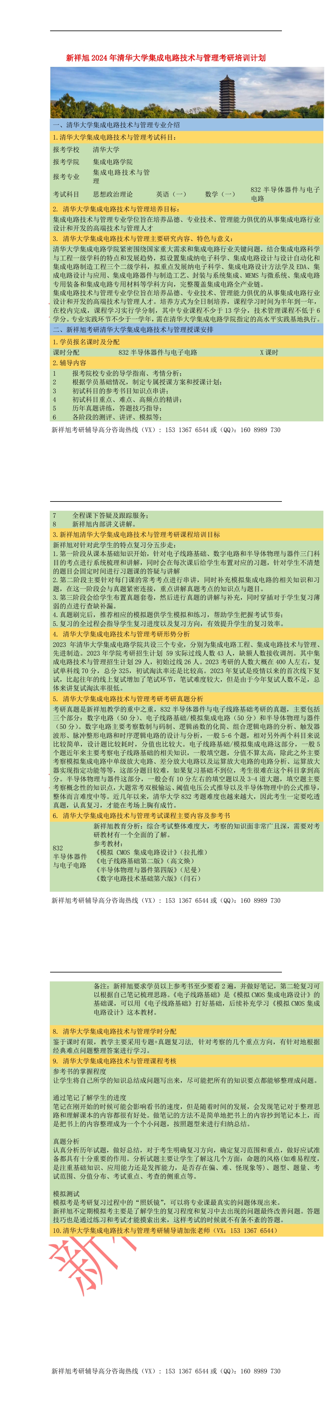 清华大学电子信息(集成电路技术与管理)2024年考研必看参考书目、考研形势、真题解析、复习规划、授课计划等汇总