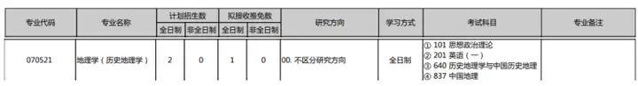 科目:① 101 思想政治理论② 201英语一③ 640 历史地理学与中国历史地理