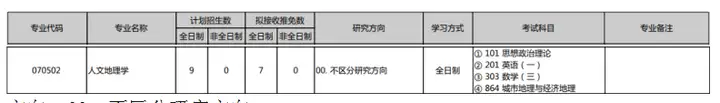 科目:① 101 思想政治理论② 201英语一③ 303 数学(三)④ 864 城市地理与经济地理