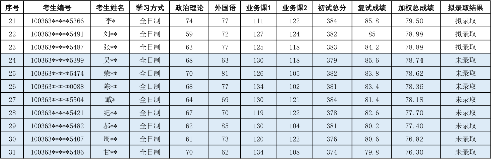七、会计学专业2023年考研拟录取结果