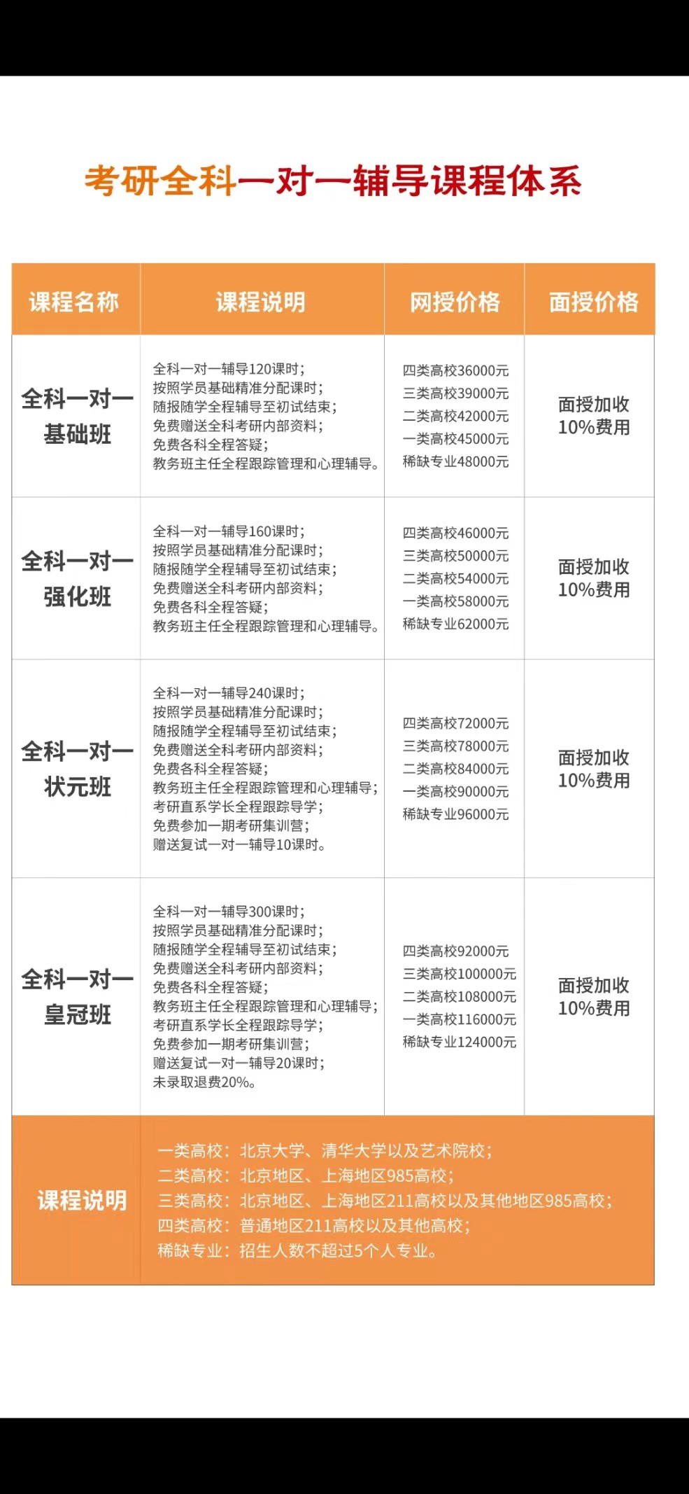 附全科一对一高端私人订制课表——