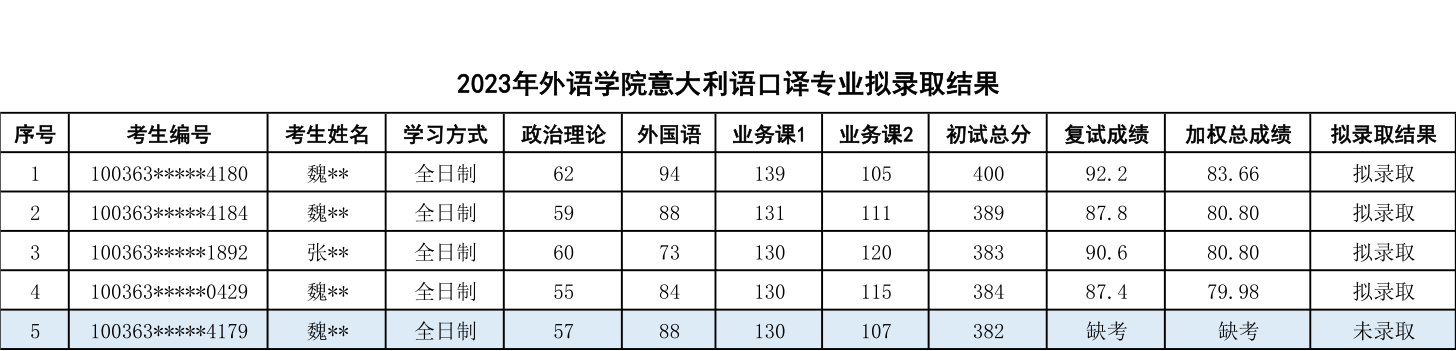 六、意大利语口译(专业学位)2023年考研拟录取结果