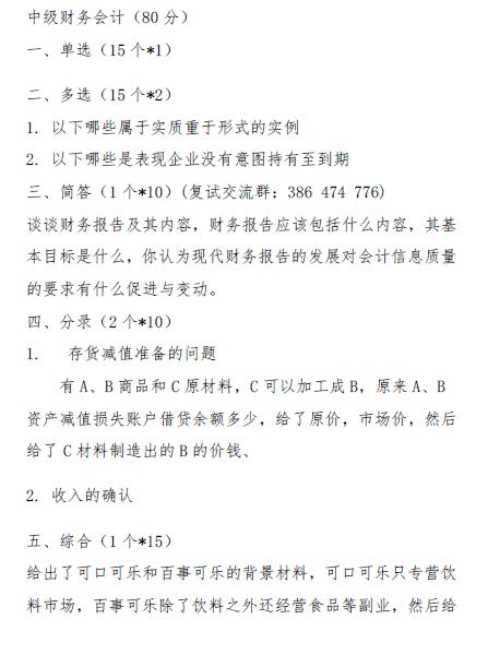 会计硕士考研真题