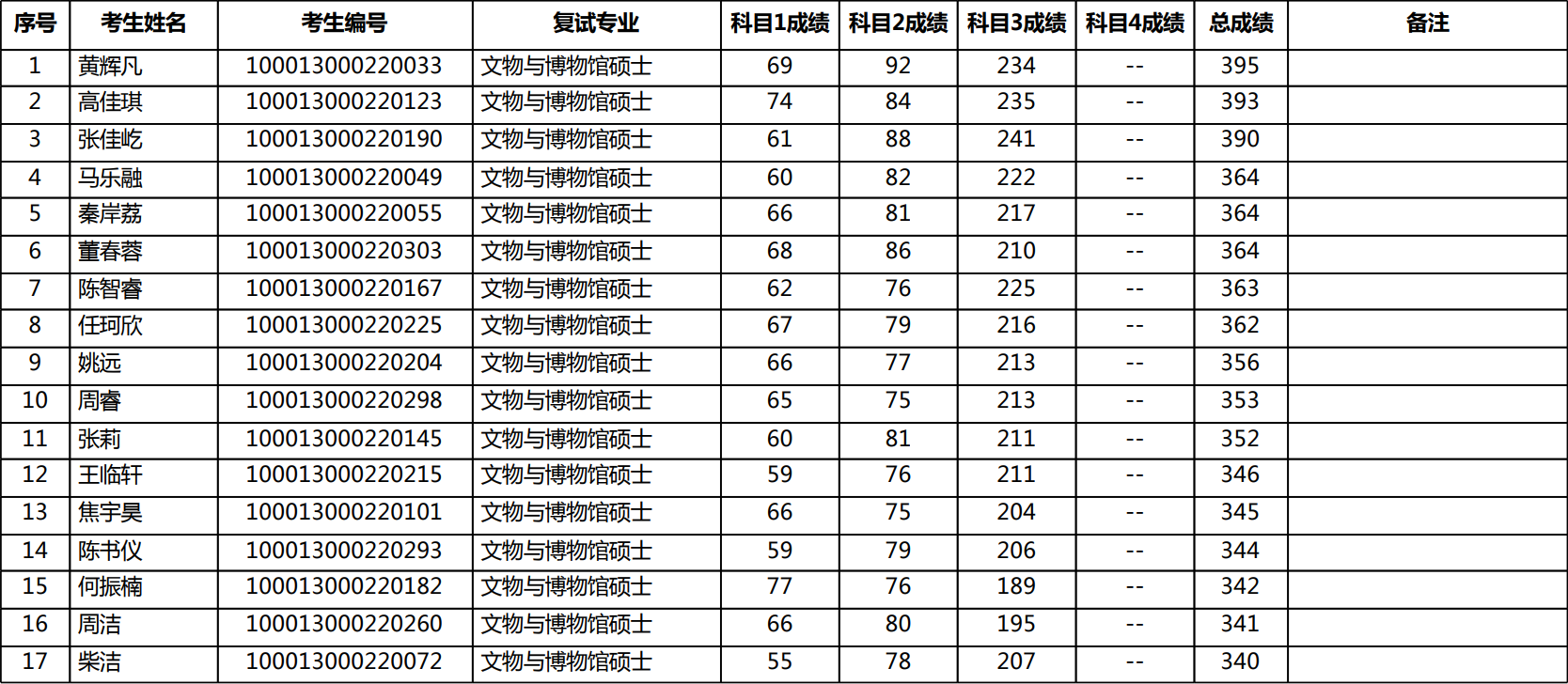 最终录取17人最高分396、最低分354)
