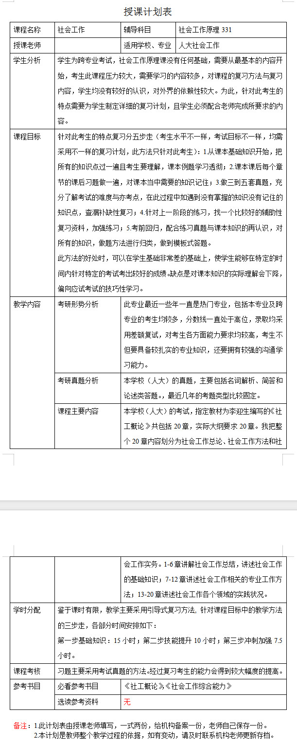 新祥旭考研:2024年中国人民大学社会工作专业考研一对一辅导授课计划
