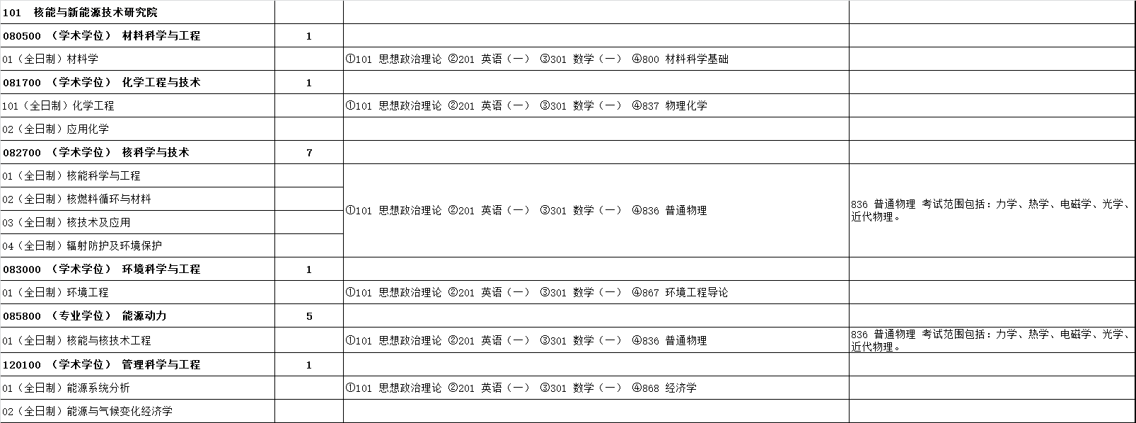清华大学核能与新能源技术研究院2024年硕士研究生统考招生专业目录、考试科目、招生人数