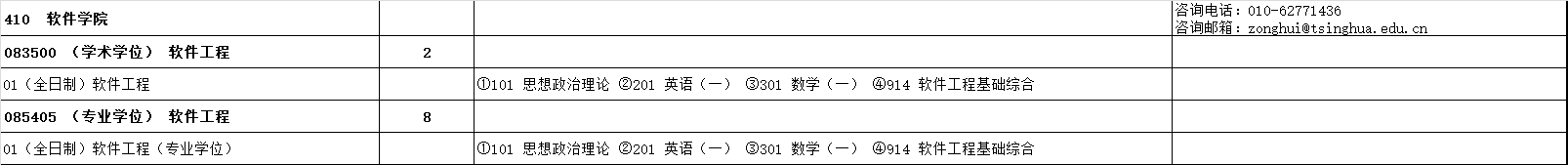 清华大学软件学院2024年硕士研究生统考招生专业目录、考试科目、招生人数