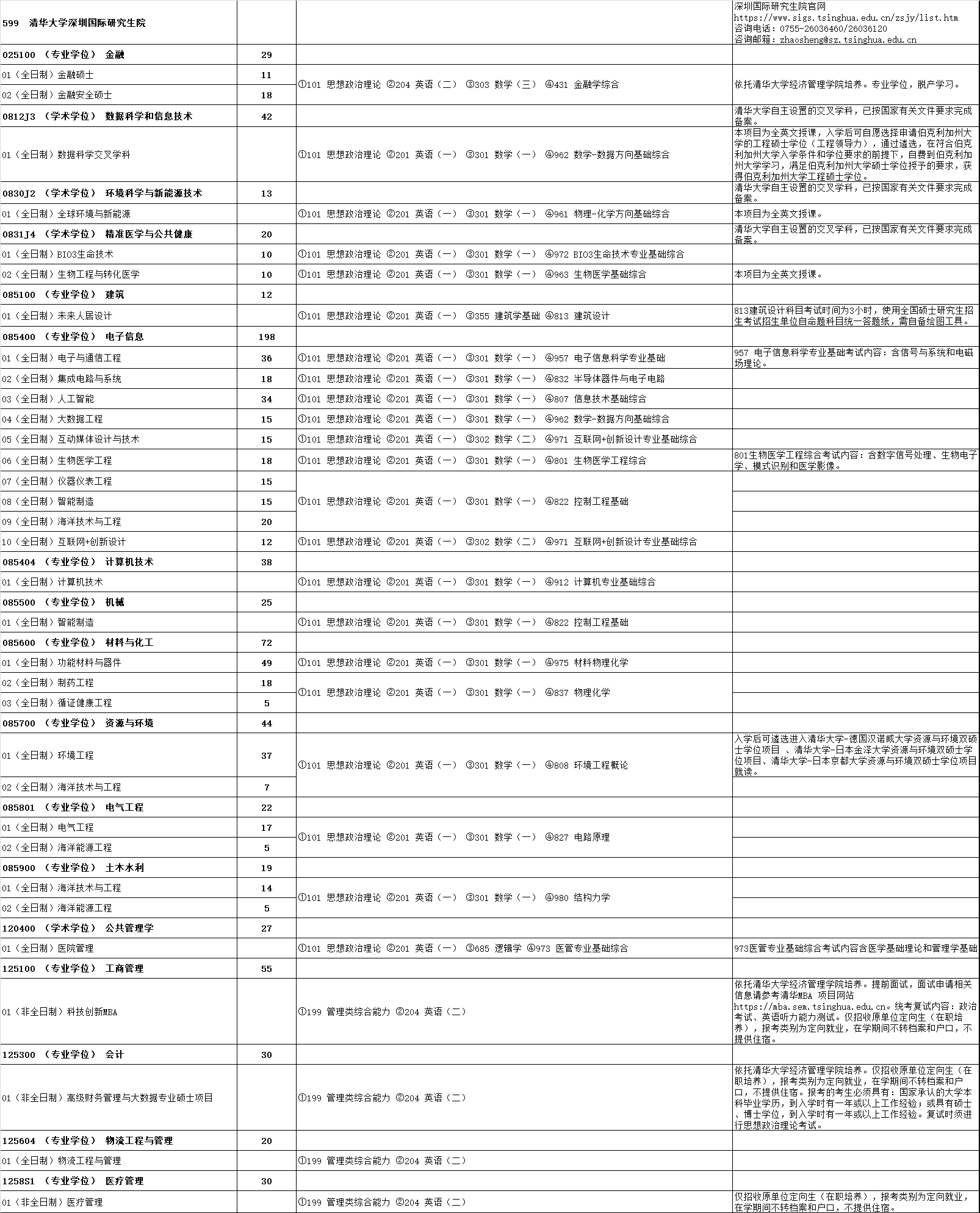 清华大学深圳国际研究生院2024年硕士研究生统考招生专业目录、考试科目、招生人数