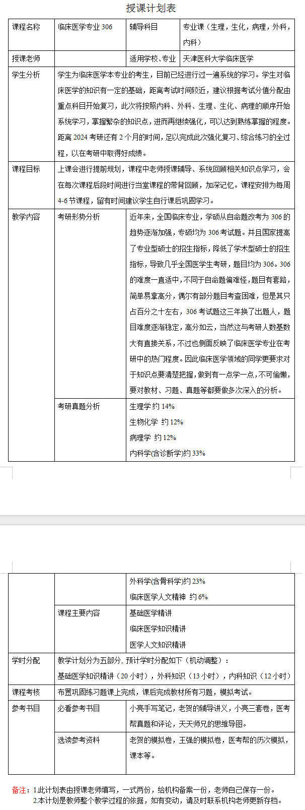 新祥旭考研:2024年天津医科大学临床医学考研一对一辅导授课计划