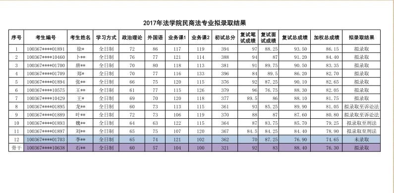 2017年对外经济贸易大学民商法研究生拟录取名单