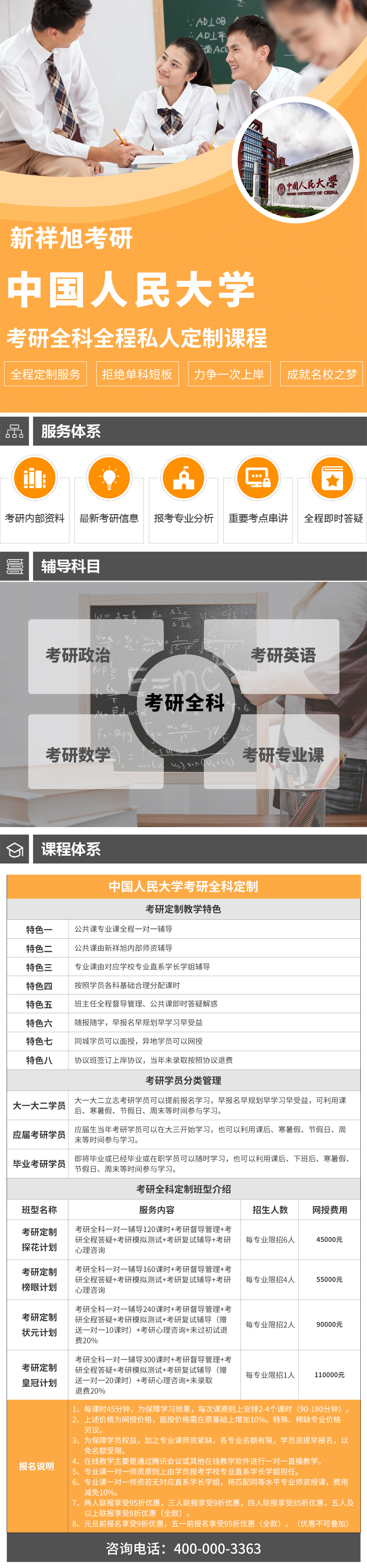 新祥旭考研:中国人民大学2025年考研全科一对一私人定制辅导课程