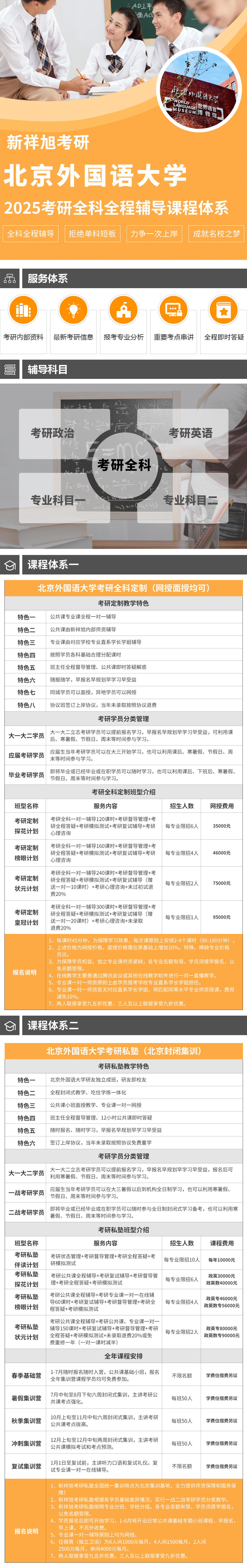 新祥旭考研机构开设有北京外国语大学考研私塾课程,北京外国语大学考研私塾为北京外国语大学考研学子提供专属的封闭式集训学习环境,考研私塾全程封闭式教学、吃住学练一体化;公共课小班面授教学(PS:若公共课某科特别弱亦可单独再另咨一对一针对性补习)、专业课一对一面授或网授;班主任全程督导管理、公共课专业课即时免费答疑。考研学员随报随学,专业务实,真诚周到,助力上岸!