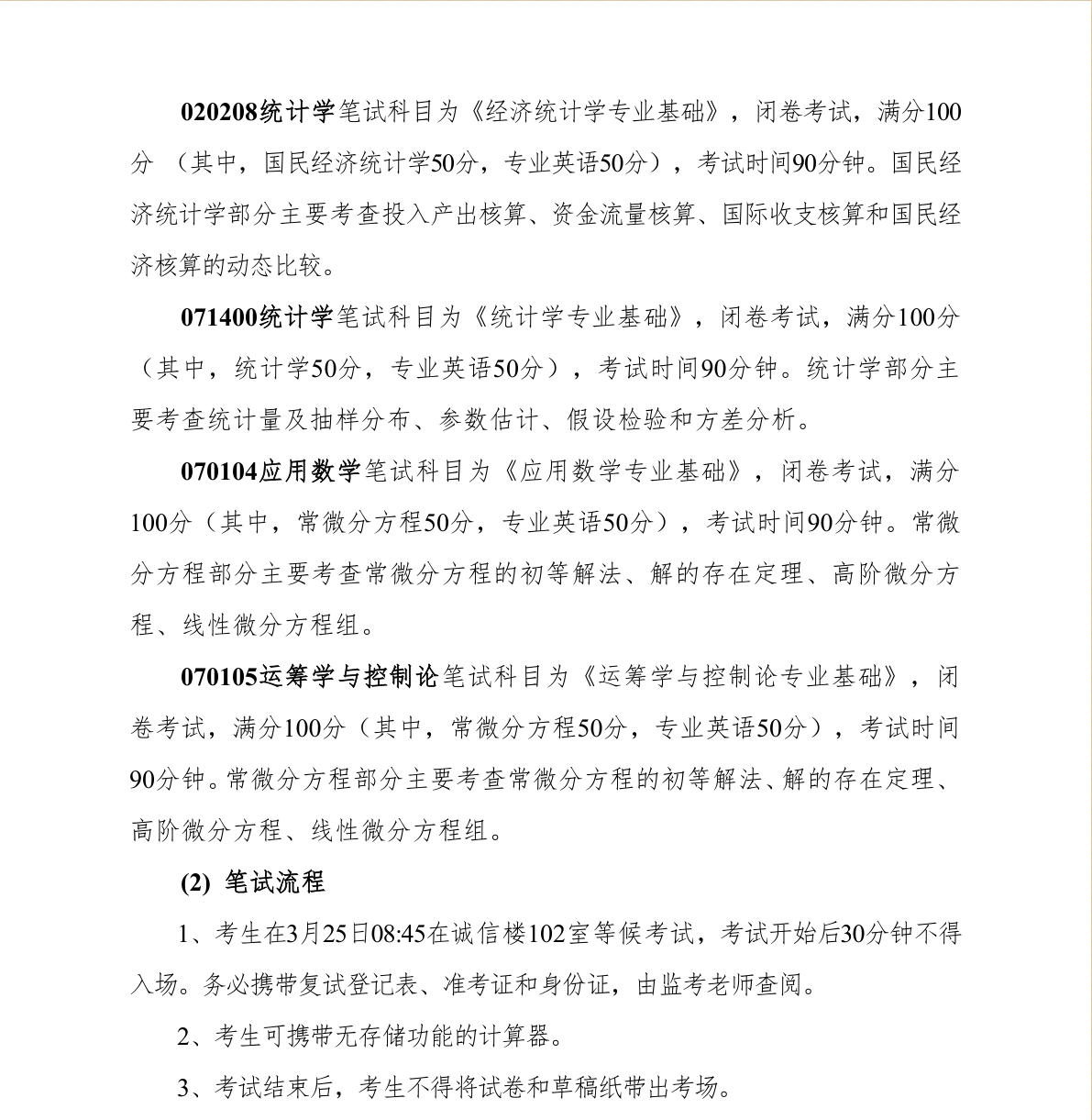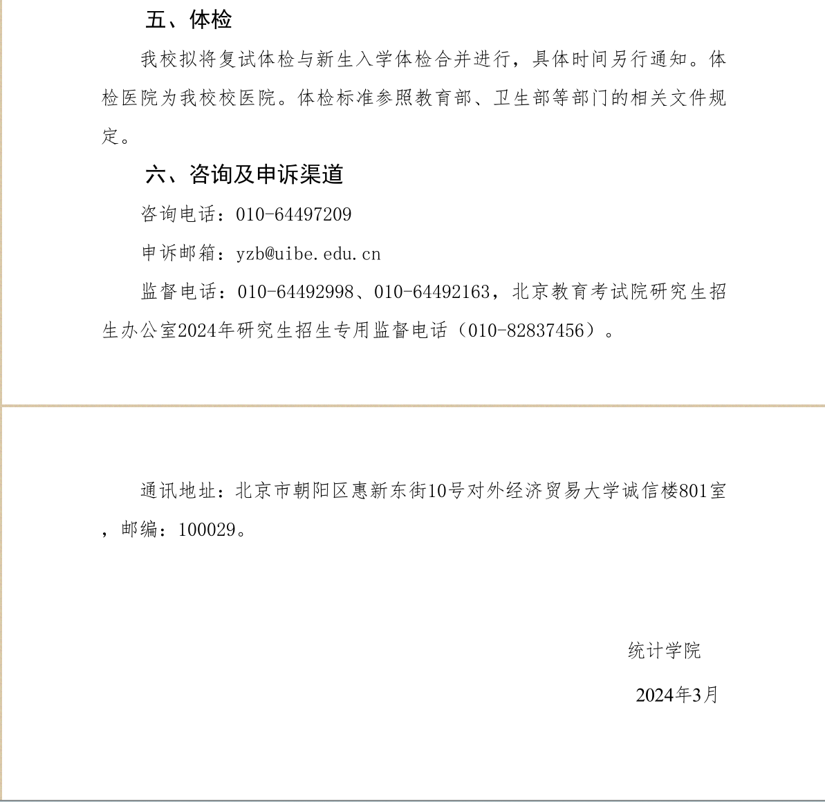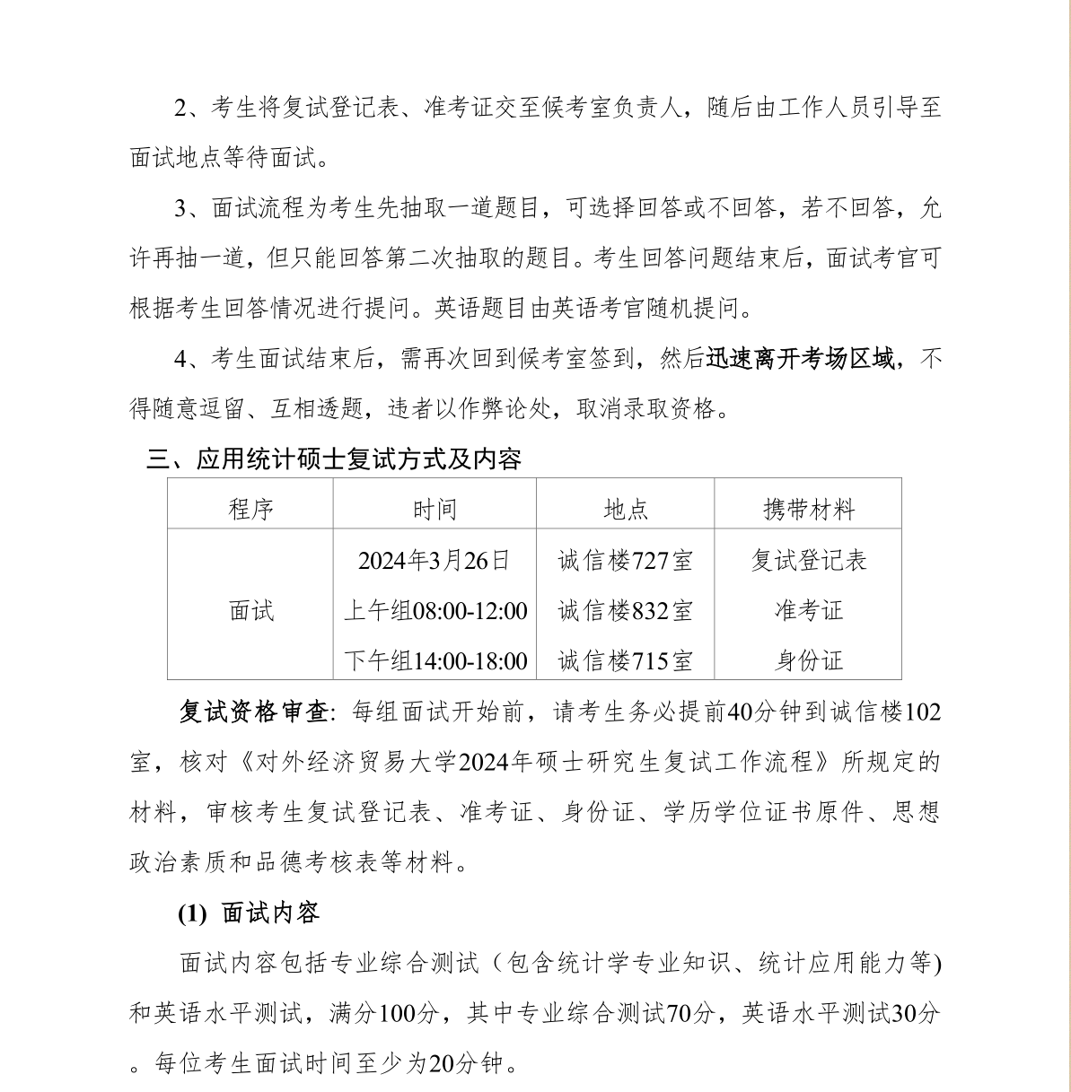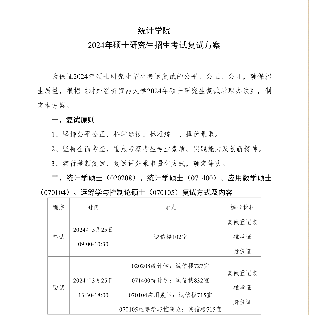 对外经济贸易大学统计学院2024年硕士研究生招生考试复试方案