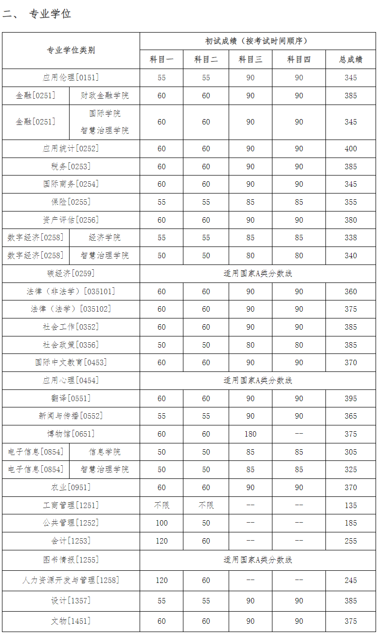 2024年中国人民大学硕士研究生招生复试基本分数线
