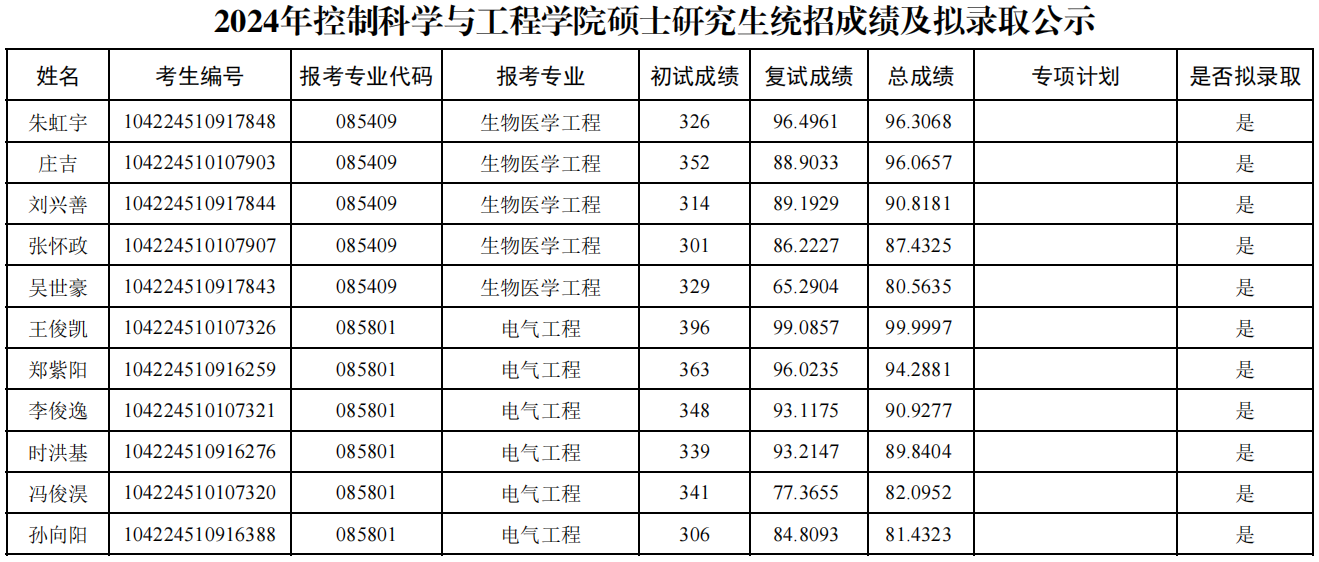 三、拟录取名单