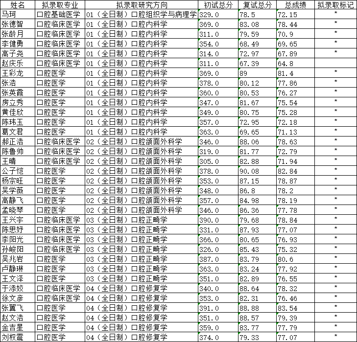 口腔临床医学专业:01方向口腔内科学、02方向口腔颌面外科学、03方向口腔正畸学、04方向口腔修复学