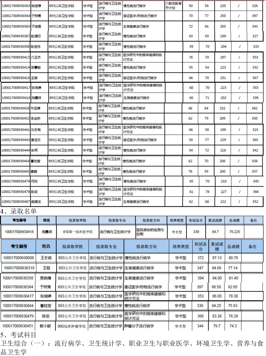 北京大学医学部100401流行病与卫生统计学考研目录