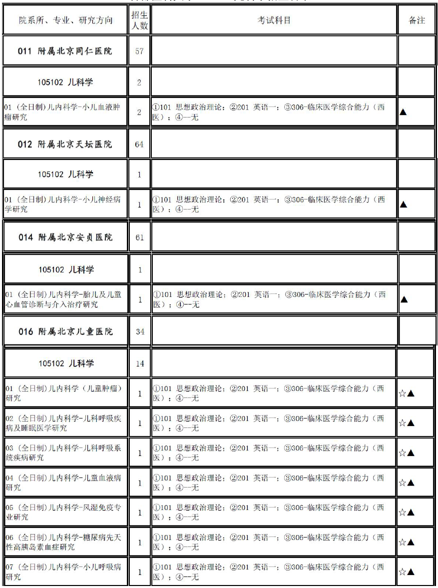 2017年首都医科大学105102儿科学招生目录、推免名单