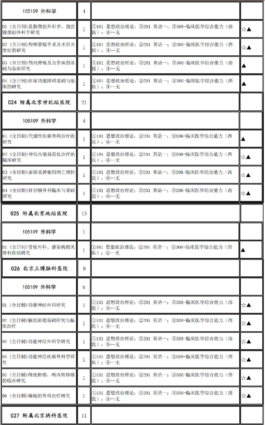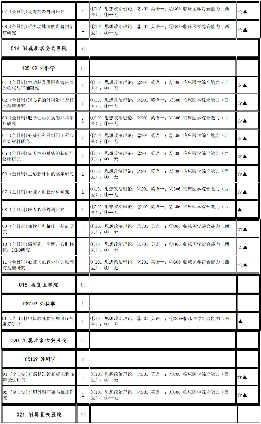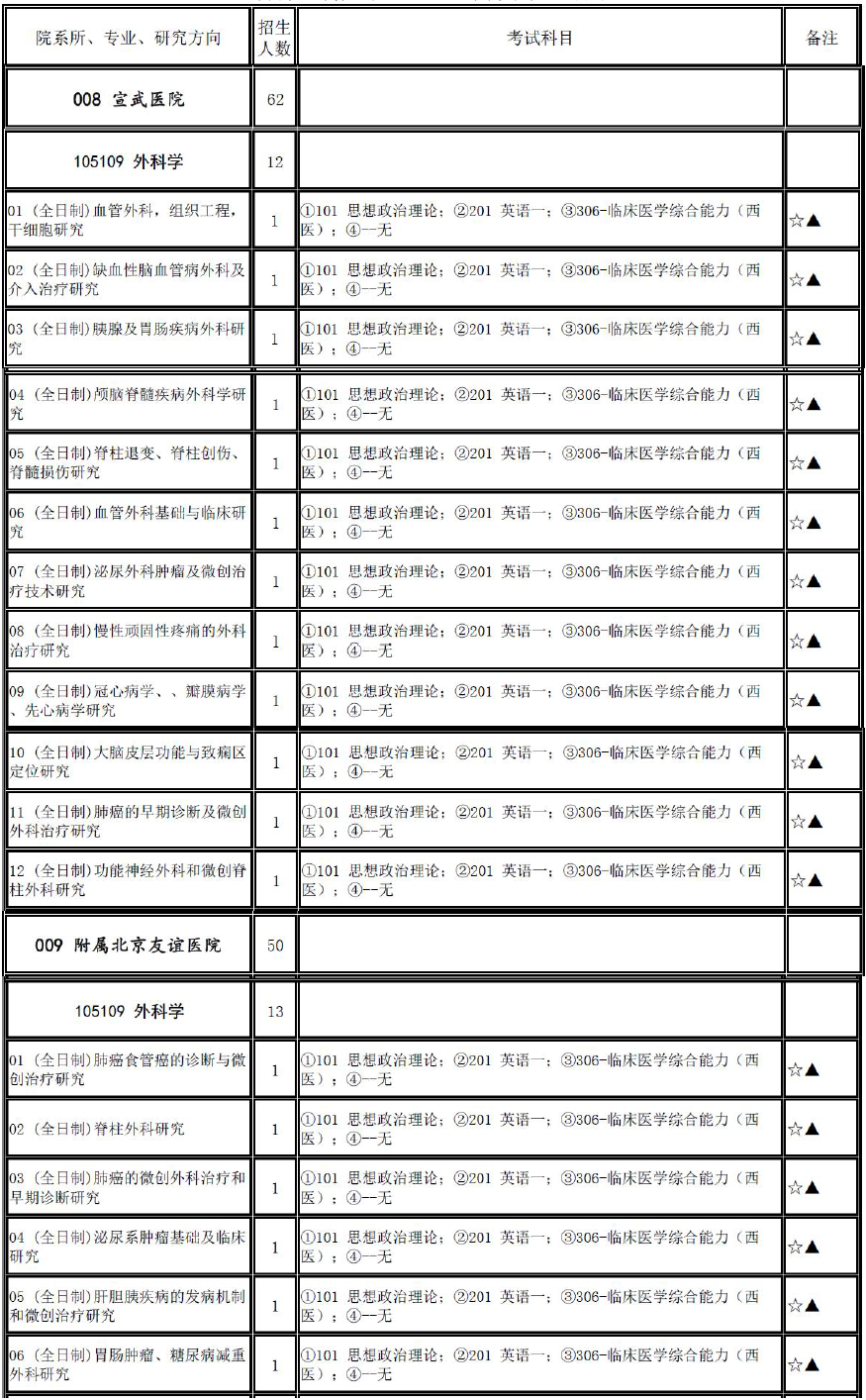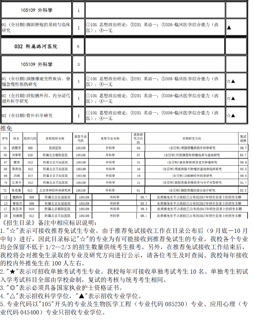 2017年首都医科大学105109外科学招生目录、推免名单
