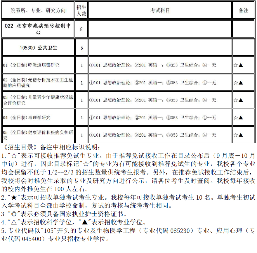 2017年首都医科大学105300公共卫生招生目录