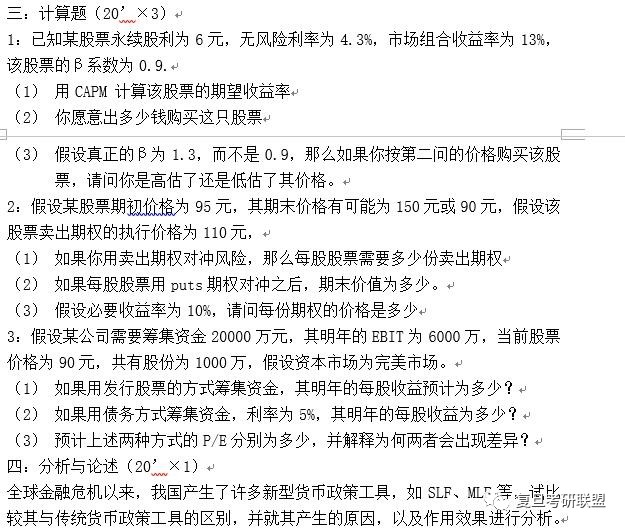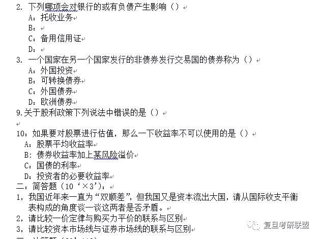 金融硕士考研真题