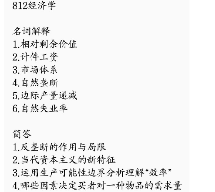 专业课812理论经济学四本书:1.刘永佶政治经济学大纲90分2.吴树青政治经济学20分3.高鸿业2本西方经济学40分以及《新祥旭中民大政治经济学高分通关宝典》配套的课后习题解答都做完;利用一个辅导班视频把数学捋了一遍,以历年真题为练习。再说一遍好好啃书本,好好做题目,这是最实在的。一定要结合真题来练习,这样才会有很大的效果。