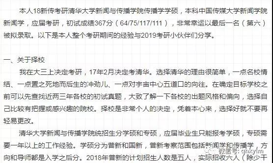 (1)业务要重视。清华近几年的业务一直在考评论,但今年既考了评论也考了采写。所以说业务方面要尽早准备,不要有畏难情绪,多写多练,也可以找研友互改文章。