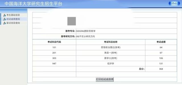 我报考的专业是国际贸易学,初试368,由于数学太差,没进复试,所以调剂了。我调剂的是本科院校——河南财经政法大学国际经济与贸易学院国际贸易学专业,所以也没啥难度。关于怎么准备复试,英语的话,重要的就是口语,每天早上好好读英语。专业课就不说了,因为我们学校复试专业课和中国海洋大学也不一样。这一部分我认为有意义的就是这张复试线图片,因为别的地方查不到。