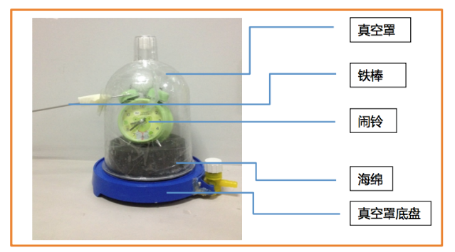 【学生活动】 通过学生讨论,用自己的话对实验现象进行描述。 【教师活动】 描述:随着真空泵抽气过程的进行,真空罩中的气体会越来越少,我们听到的声音也越 来越弱,那么,当真空罩中的空气全部被抽光,我们还能不能听到声音呢?当真空罩中 没有任何气体,就达到了我们所说的真空状态。 总结:声音也可以在气体中传播,但不能在真空中传播。 过渡:现在我们已经几乎听不到真空罩中闹铃的声音了,那我们应该如何让声音再重新传出来呢?前提是不能充空气,请同学们以四人为以小组思考讨论。 【学生活动】 组成四人小组,发散思维,认真讨论该如何让闹铃声音重新传出,并积极回答问题。 【教师活动】 实验展示二:1、在实验展示一的基础上,抽真空至真空罩中闹铃的声音几乎无法被听到,说明抽真空完成,关闭通气孔开关;2、此时真空罩中是真空的环境,排除了空气的干扰,这时再用铁棒去触碰闹铃,让学生仔细观察闹铃声音大小的变化? 【学生活动】 认真观察教师的实验操作,观察并记录实验现象,用自己的话对实验结果进行概述。 【教师活动】 总结:声音可以在固体中传播。 四、教学设计题(30分) 请根据所示的教材内容,完成以下各题: 1.写出本部分内容的学习目标。 2.结合新课程理念,写出与学习目标相一致且较为完整的教学过程。 3.写出板书设计。
